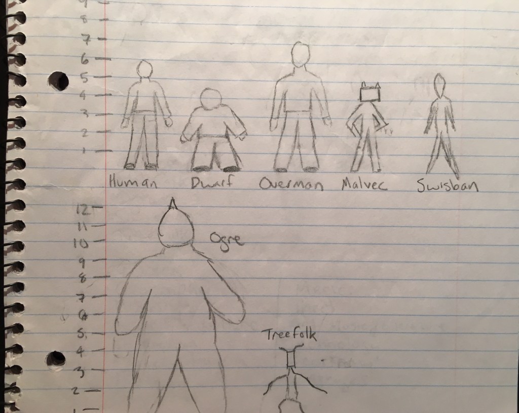 I started it at age 14 and continued to work on it until I was 16 (around the time I discovered Surrealism). As I grew older and could see the clichés for what they were, I rewrote it to add originality. The medieval setting changed to the Bronze Age. I added the race of Overmen—demigods that served as the not-always-benevolent ruling class, coloring the black-and-white story a little grayer. I shunned the Northern European background of most fantasy novels and instead amalgamated Mesopotamian, Aztec, and Minoan cultures. Ultimately, it would reach a little over 50,000 words.