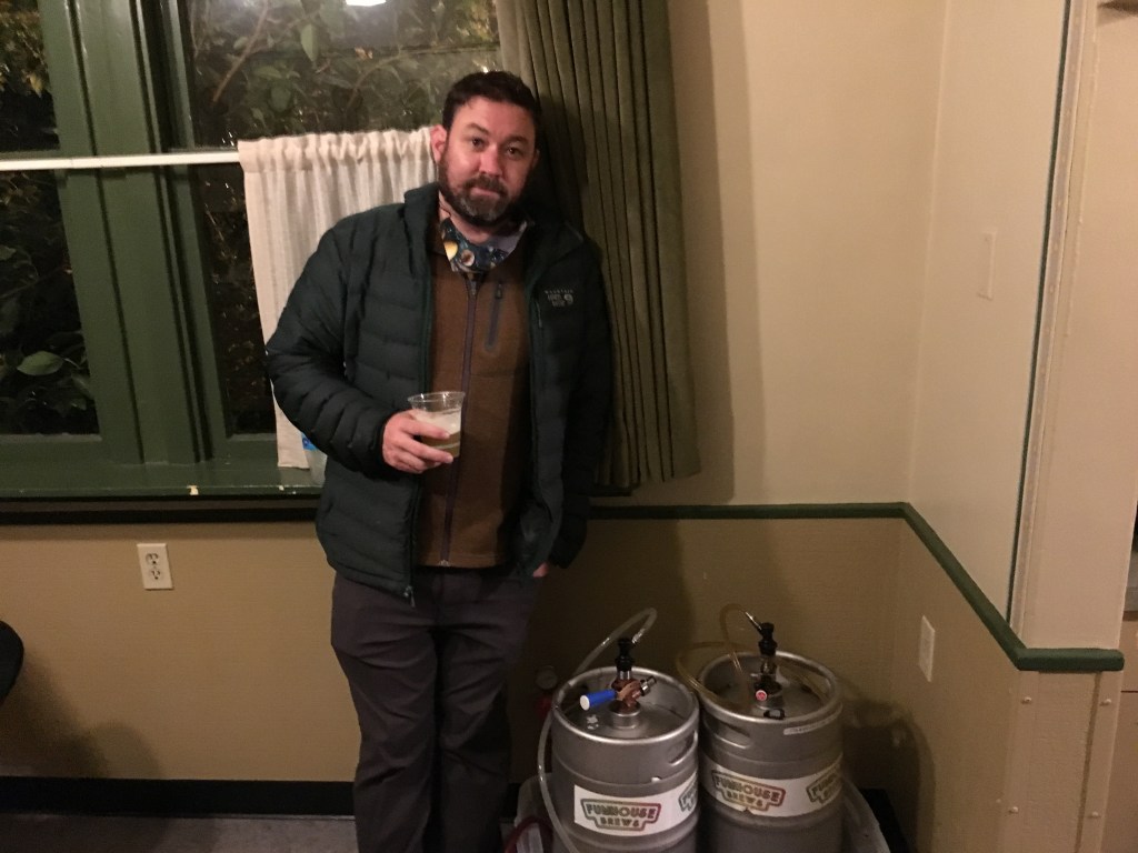 After a satisfying dip in the famous Edgefield soaking pool with some of my fellow bizarros, we returned to the Ad House for music and entertainment. Kirsten Alene read random, disjointed snippets of a novel she wrote, putting the room in stitches. And Jeff Burk told the bizarre stories of running a cat grooming business and the peculiar people that show up at his door.